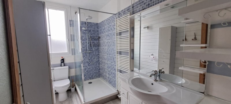 Un palier dessert trois chambres bien proportionnées ainsi qu'une salle de douche avec WC.