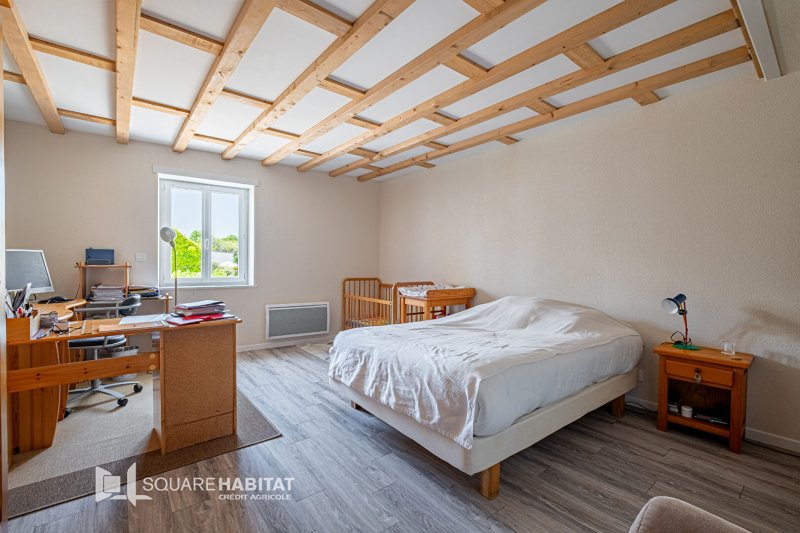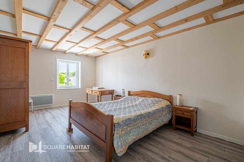 Au deuxième étage, on découvre une spacieuse chambre parentale avec sa salle d'eau privative et ses toilettes indépendants, offrant un bel espace intime et confortable.