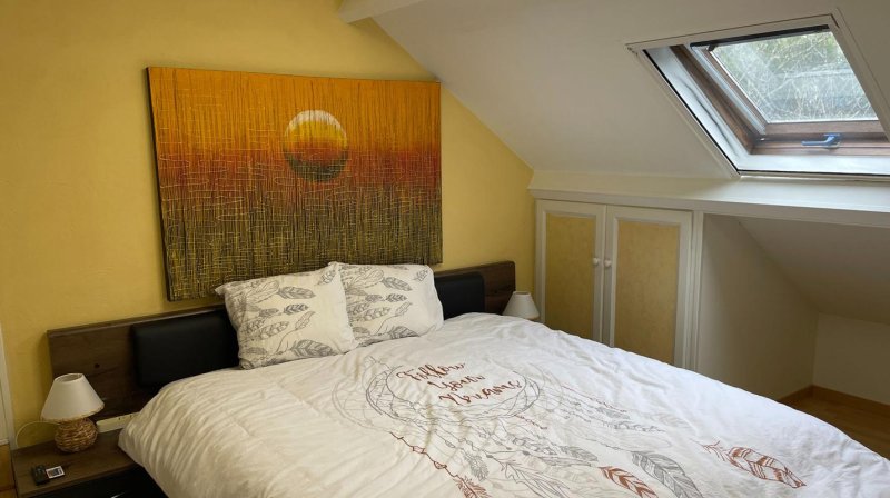 Le niveau principal constitue le coeur de la maison, avec un agréable séjour doté d'une cheminée et un accès direct à une grande terrasse. Celle-ci offre une belle vue dégagée sur la vallée et le terrain. La cuisine s'intègre harmonieusement à cet espace. Ce niveau comprend également trois chambres, dont une avec accès direct à la terrasse et au jacuzzi, une salle de bains spacieuse et un WC séparé.