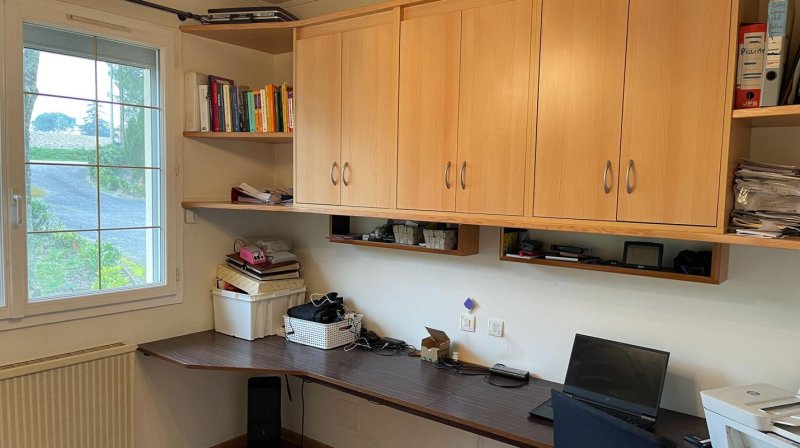 Située dans un environnement calme et sans vis-à-vis, tout en restant à courte distance des commodités, cette maison des années 80 a été construite avec soin et offre des volumes généreux ainsi que de nombreuses possibilités, aussi bien pour un usage privé que pour une activité professionnelle à domicile.