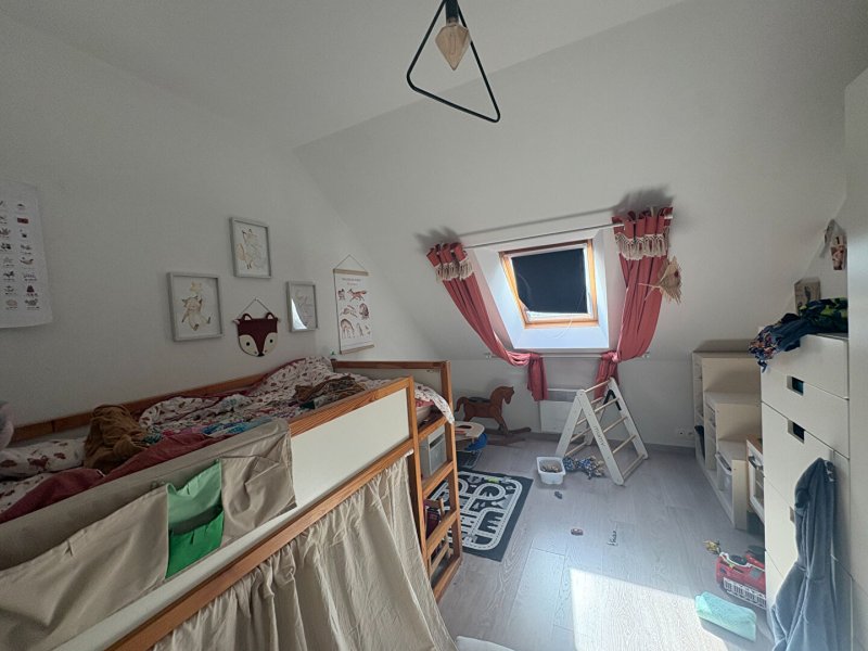 À l'étage, l'espace nuit se compose de trois chambres confortables, parfaites pour accueillir parents et enfants, ainsi qu'une salle de bain fonctionnelle pensée pour le quotidien d'une famille.