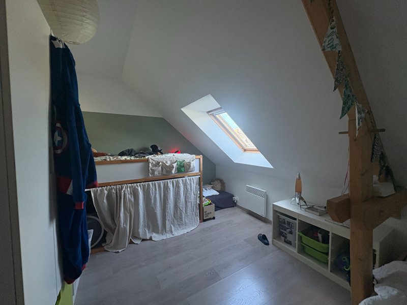 À l'étage, l'espace nuit se compose de trois chambres confortables, parfaites pour accueillir parents et enfants, ainsi qu'une salle de bain fonctionnelle pensée pour le quotidien d'une famille.