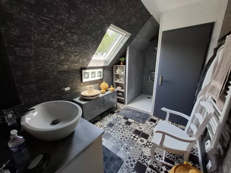 A l'étage, une mezzanine desservant deux belles chambres, une salle d'eau avec WC, et une autre chambre traversante.