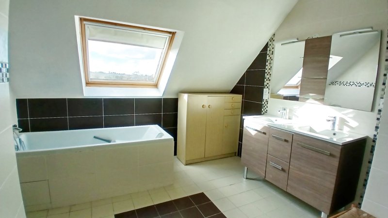 Proximité Centre et Complexe sportif pour cette maison récente de 122m2 au sol avec vie de Plain Pied. Elle offre un beau séjour avec cuisine aménagée et équipée, exposé Ouest, 4 grandes chambres (dont une au RDC), salle de bains, salle d'eau, 2 wc et garage. L'ensemble sur un agréable terrain, au calme, d'environ 495m2.