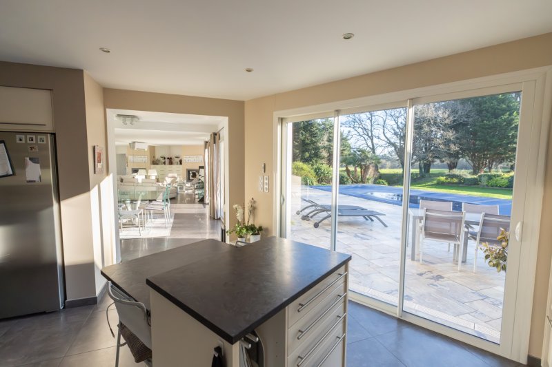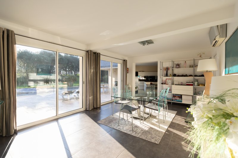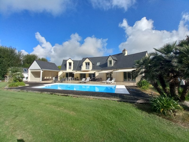 Cette magnifique propriété avec vue sur le Golf de La Baule, lumineuse et orientée sud, vous séduira grâce à ses grands volumes et son environnement calme et verdoyant. Au rez- de-chaussée, un hall d'entrée, un double salon séjour, une cuisine ouverte, une vaste suite parentale de 45 m2. L'ensemble avec de nombreuses ouvertures pour profiter de la terrasse, la piscine, et de la vue sur le golf... A l'étage, un grand palier bureau qui distribue trois chambres, une salle d'eau et une salle de bains. Egalement un double garage avec un atelier, de nombreux stationnements exterieurs, un pool house, une terrasse couverte, un espace toilettes et douche près de la piscine, climatisation dans toute la maison, arrosage automatique...