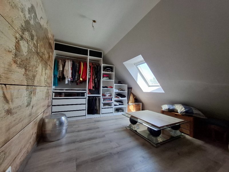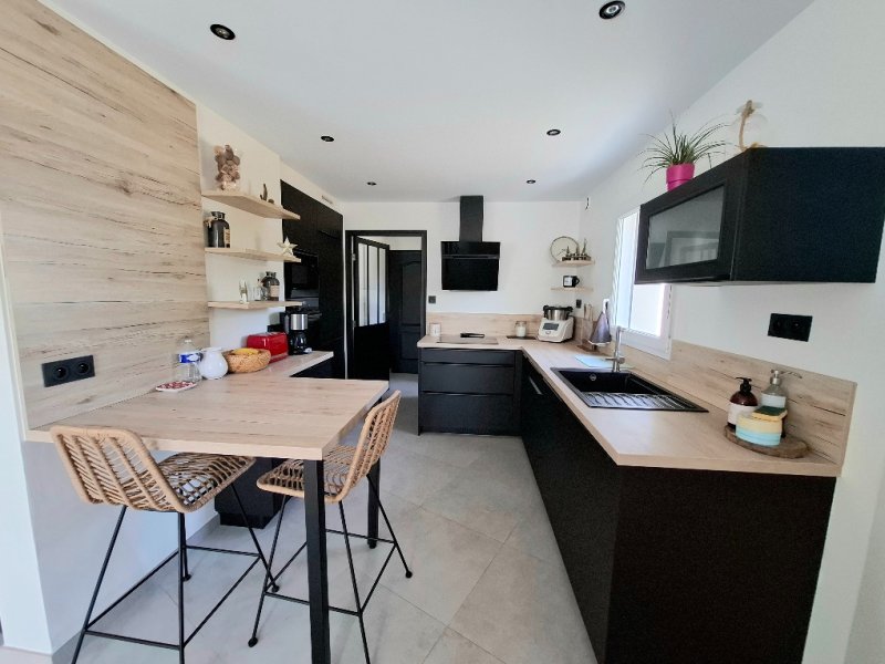 Maison parfaitement entretenue, elle propose une belle pièce de vie avec poêle à bois, cuisine récente aménagée et équipée, une arrière cuisine avec rangements.