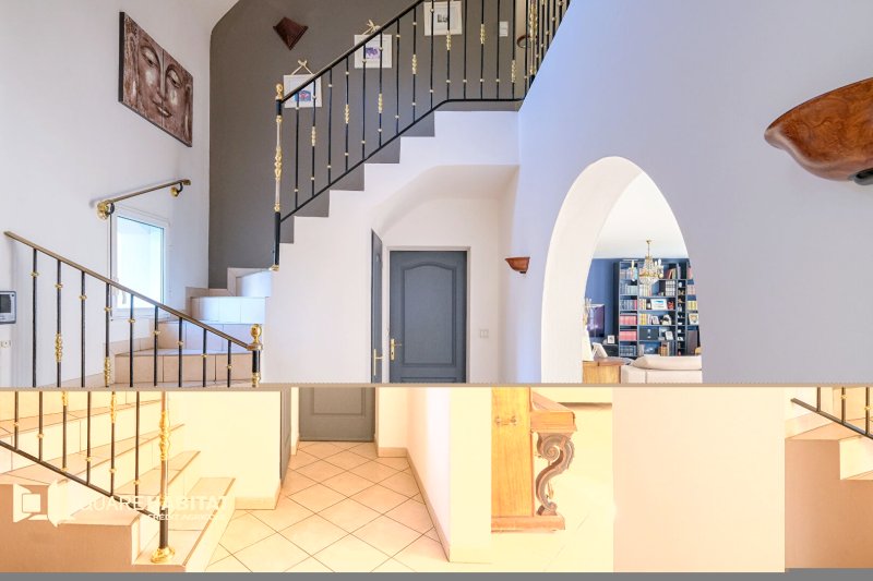 Elle se compose en rez de chaussée d'une vaste entrée, d'une pièce à vivre baignée de lumière donnant sur une terrasse de 125 m² avec piscine, d'une cuisine aménagée et équipée, d'une suite parentale, d'une lingerie et d'un garage de 43m².