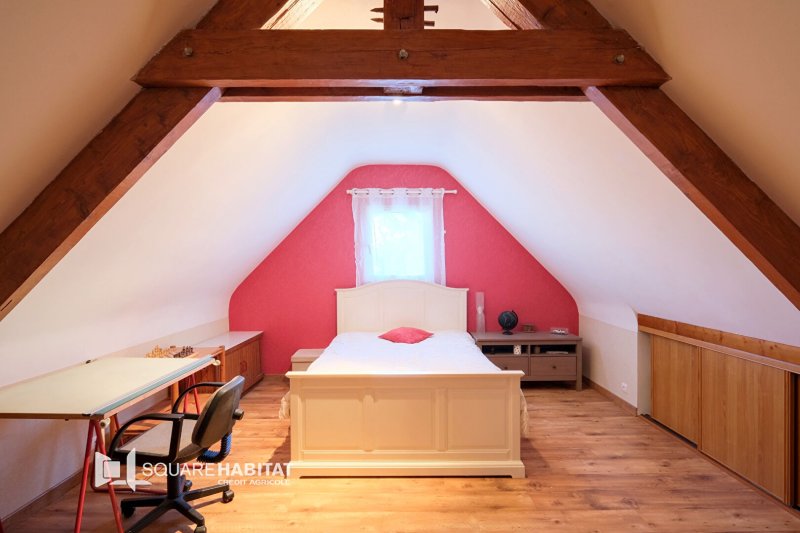 A l'étage, vous disposerez de quatre chambres, d'un bureau, d'une salle de bains avec douche et d'un WC séparé.