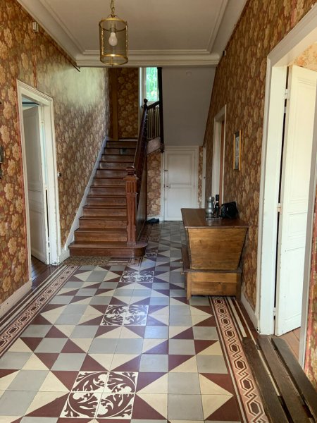 Vastes volumes, Nombreuses cheminées, point d'eau dans pratiquement toutes les chambres. Magnifiques parquets et vitraux. Grand parc clos d'environ 2500m². Venez découvrir tout le charme de ce bien rare à la vente.