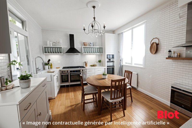 La maison se compose d'une cuisine aménagée et équipée qui s'ouvre sur un salon lumineux , créant ainsi un espace de vie convivial de 26m².