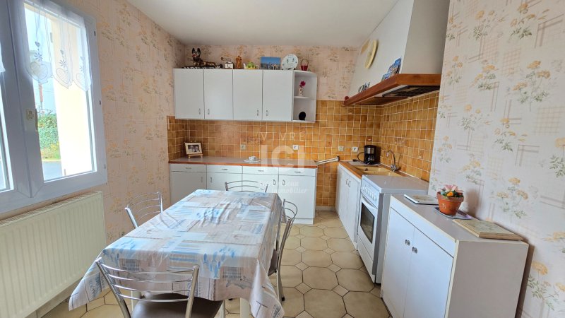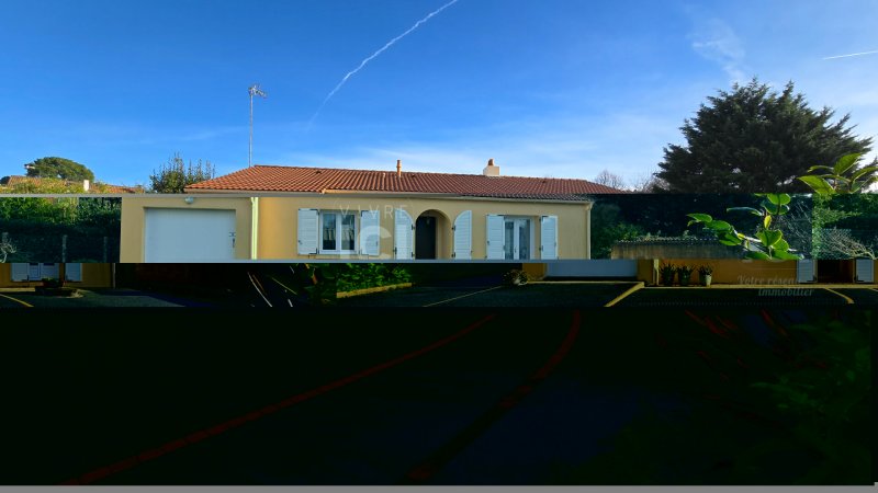 Centre ville de SAINT BREVIN LES PINS, maison de plain-pied de 82 m² comprenant : entrée, séjour-salon lumineux (cheminée), cuisine indépendante, deux chambres, salle d'eau, wc. Grand garage attenant. Remise de15,2 m² .