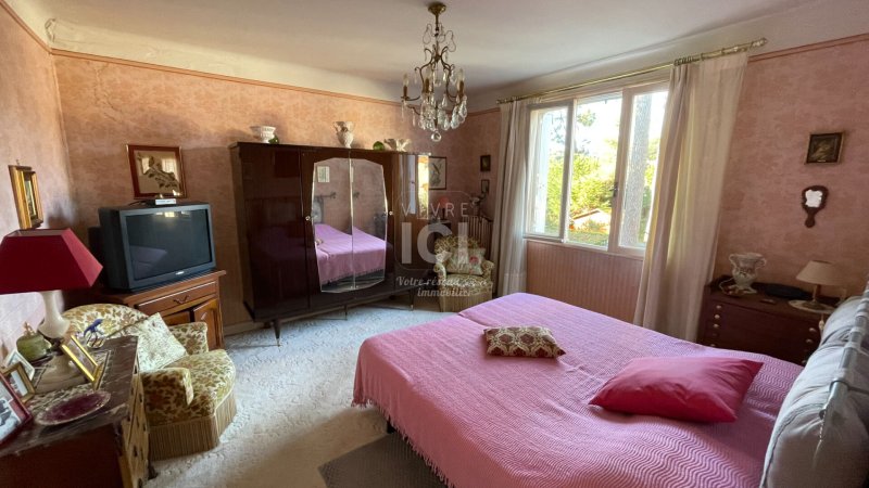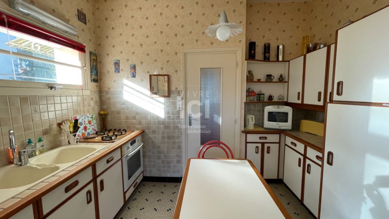 Sur une parcelle arborée de 550 m² environ, cette maison se compose d'une entrée, un salon-séjour exposé Sud-Ouest, une cuisine aménagée et équipée, une véranda, une chaufferie, un wc. A l'étage : palier desservant deux chambres, une chambre en enfilade, une salle de bain et un wc.