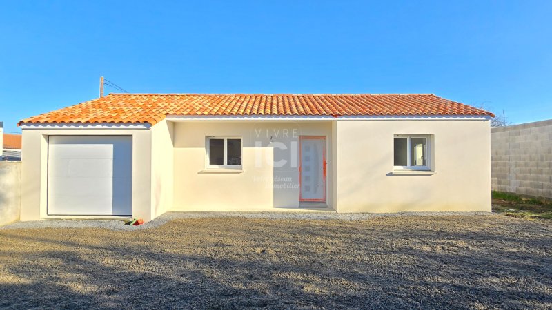 Secteur LA GRAND-VILLE, à 2.5 km du centre ville de ST BREVIN LES PINS, maison neuve de plain pied offrant belle pièce de vie sud ouest avec cuisine ouverte aménagée, cellier, 3 chambres, salle d'eau (2 vasques, douche à l'italienne), wc. Terrasse. Garage motorisé. Terrain d'environ 420 m². Chauffage au sol (pompe à chaleur).