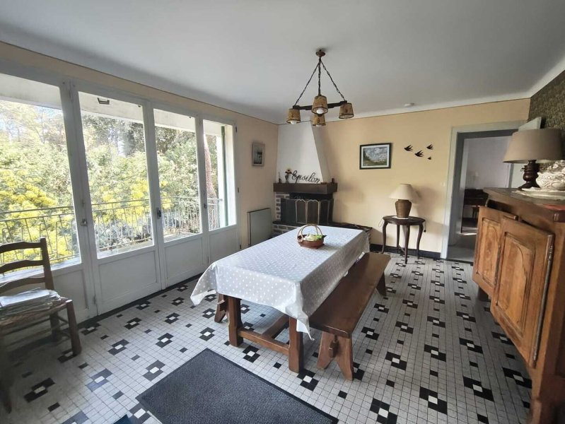 Un espace de vie lumineux comprenant un salon-séjour avec cheminée ouverte, une cuisine indépendante, deux grandes chambres avec placards intégrés, une salle d'eau et un WC.