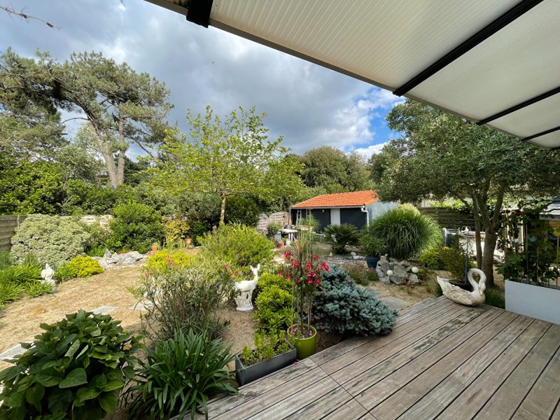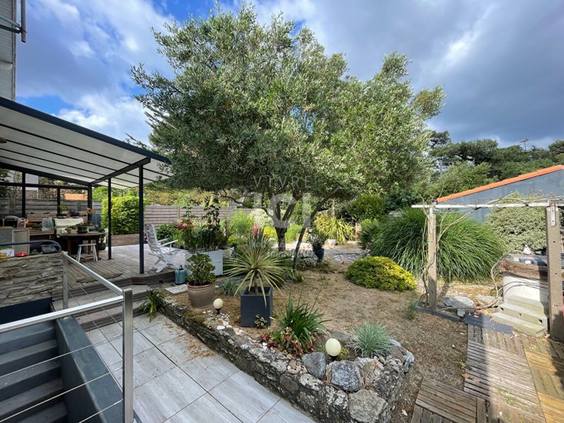 SECTEUR RECHERCHÉ ! À proximité immédiate de la plage et du centre-ville des PINS, cette maison pleine de charme se compose d'une spacieuse pièce de vie de 40 m² exposée Sud-Ouest (cheminée), dégagement desservant deux chambres (placard), deux salles d'eau, une cuisine aménagée et équipée donnant sur le jardin. L'étage se compose d'une chambre, un bureau, une bagagerie. Magnifique jardin clos et paysager de 520 m² environ avec portail électrique, puits, terrasse couverte.