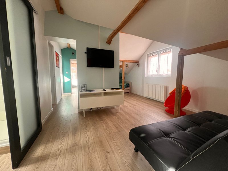 - Un appartement sous comble proposant une pièce de vie, une cuisine A/E, une chambre, une salle d'eau avec WC. (Accès par escalier intérieur ou extérieur).