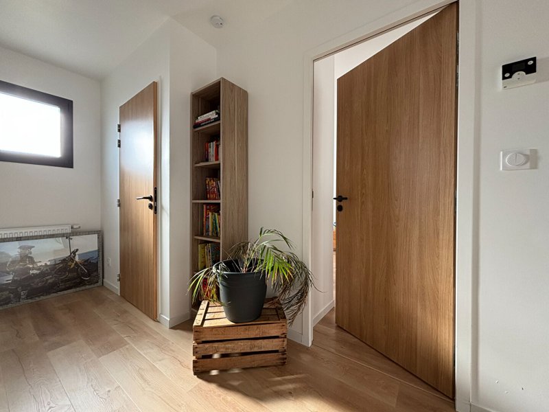 Elle se compose d'une entrée avec rangements, une spacieuse et lumineuse pièce de vie avec cuisine semi-ouverte, un cellier, 4 chambres, 2 salle d'eau, 2 wc, un garage.