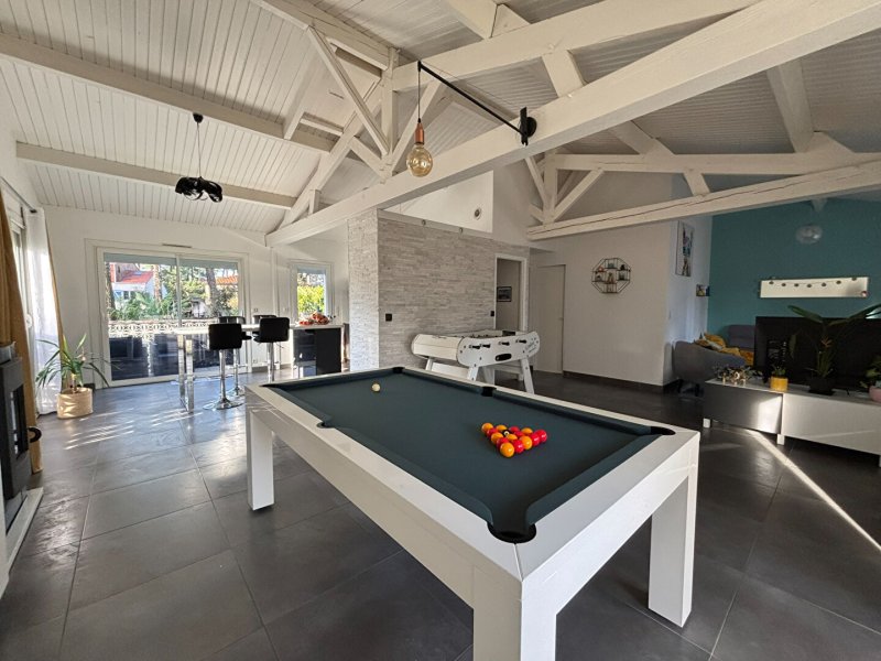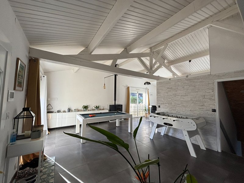 Idéalement située à 700 m des commerces et de la plage, dans un environnement paisible et plein de charme, cette superbe maison entièrement rénovée avec goût offre de belles prestations et de généreux volumes, le tout sur un magnifique terrain arboré d'environ 1 000 m².