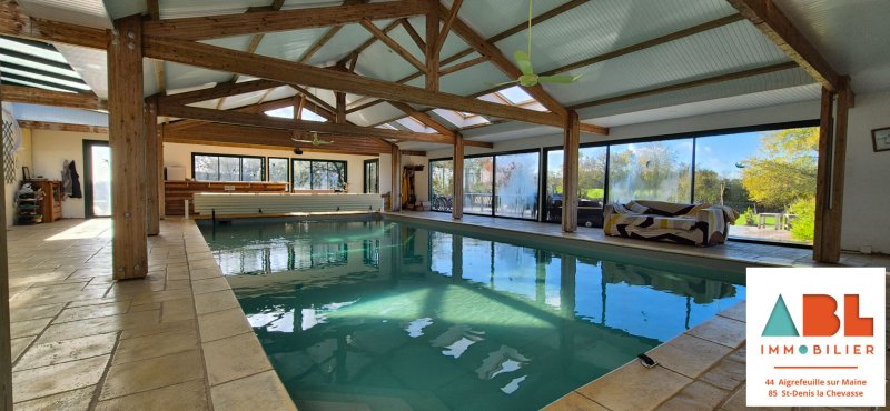 NOUVELLE EXCLUSIVITE, située en campagne sur un terrain de plus de 6000m² cette longère est d'une surface de 223m² habitables ainsi qu'une salle de 198m² avec sa grande piscine de taille 12m x 6m, grande terrasse intérieure et solarium donnant sur la verdure et un étang. Elle est composée au rez de chaussée: d'une entrée, un salon de 27m² avec une bibliothèque, une salle à manger de 35m² avec une poêle lorrain, une cuisine aménagée et équipée de 10m², un wc, un placard, une buanderie de 20m² et un placard, coté nuit: 2 chambres de 18m² avec salle d'eau ou salle de bains, et un wc séparé.
