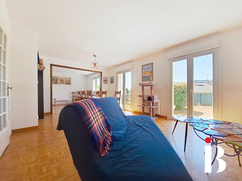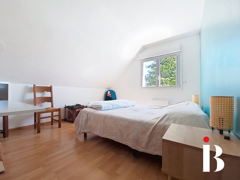 Elle propose une spacieuse pièce de vie de 40m2 avec accès au jardin entièrement clos avec terrasse, une cuisine aménagée, 4 grandes chambres dont une en rez-de-chaussée, 2 salles de bain, de nombreux rangements, un grand garage de plus de 35 m2 avec accès grenier.