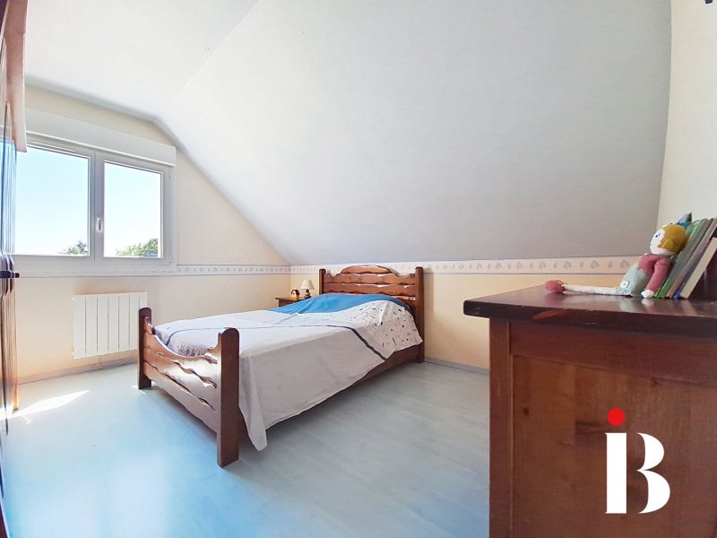 Elle propose une spacieuse pièce de vie de 40m2 avec accès au jardin entièrement clos avec terrasse, une cuisine aménagée, 4 grandes chambres dont une en rez-de-chaussée, 2 salles de bain, de nombreux rangements, un grand garage de plus de 35 m2 avec accès grenier.