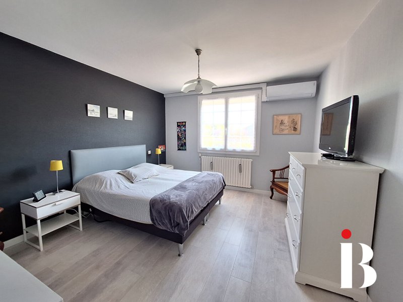 La maison offre une agréable vie de plain-pied, avec des espaces bien pensés, idéaux pour le quotidien d'une famille. À l'étage, quatre chambres spacieuses assurent à chacun un espace confortable et paisible.