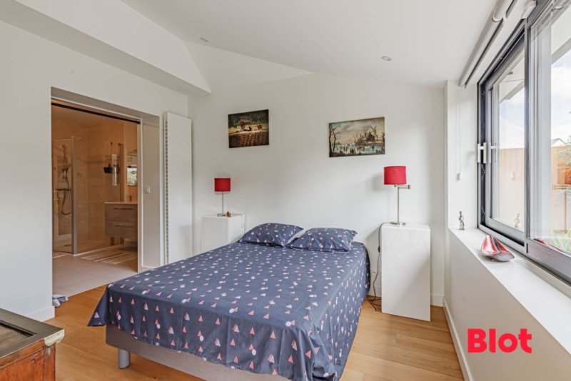 Sur le même niveau vous trouverez, pour une vie de plain-pied, une chambre avec sa partie dressing, sa salle d'eau et ses toilettes.