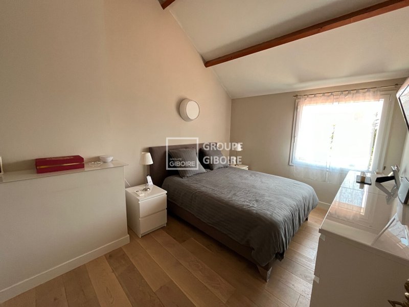 À l'étage, vous serez séduit par deux grandes chambres dont l'une dispose d'un dressing et d'un plafond cathédrale. Une vaste salle de bain avec baignoire balnéo et douche ainsi qu'un second WC indépendant complètent ce niveau.