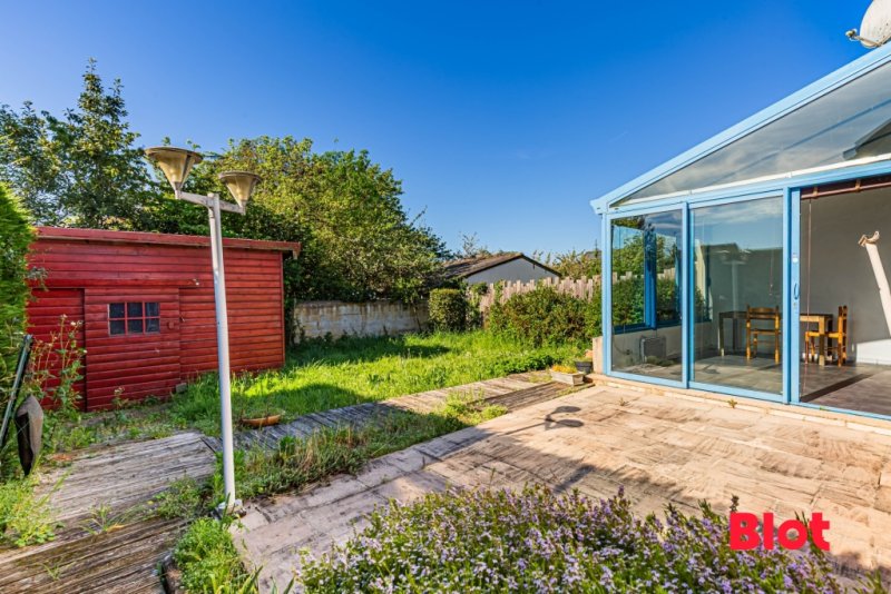 À l'extérieur, profitez d'un jardin exposé plein sud, idéal pour vos moments de détente, ainsi que d'un cabanon pratique pour le stockage.