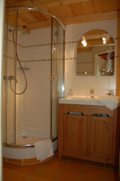 Le chalet possède un autre accès qui vous mène au cellier et a la buanderie du RDC, ainsi qu' à l'étage, avec une chambre et une salle d'eau.