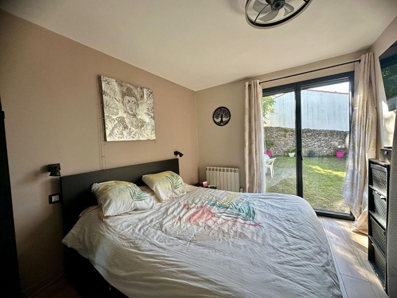 Une entrée avec penderie, salon-séjour, cuisine aménagée et équipée donnant avec au jardin, un coin buanderie avec w.c séparé, une suite parentale avec salle d'eau.
