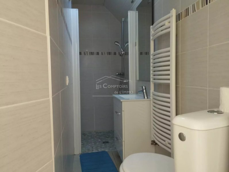 Au RDC : une entrée donnant sur une chambre, un séjour, une cuisine (aménagée équipée), une salle de douche avec toilettes.