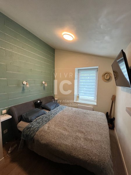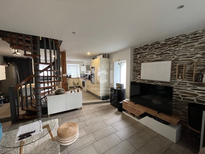 Elle vous propose une très belle pièce de vie avec salon, cuisine ouverte et poêle à granulés. Pour ceux qui aiment l'ancien, vous pourrez apprécier la pierre apparente qui apporte tout le charme à cet espace de vie.