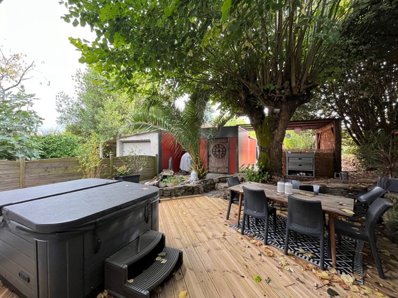 A l'extérieur, à l'abris des regards, vous pourrez profiter d'un cadre bucolique avec une belle terrasse de 27 m² , un jacuzzi, un jardin clos avec dépendances et abris de jardin.