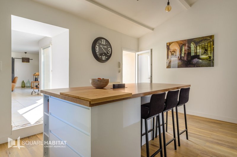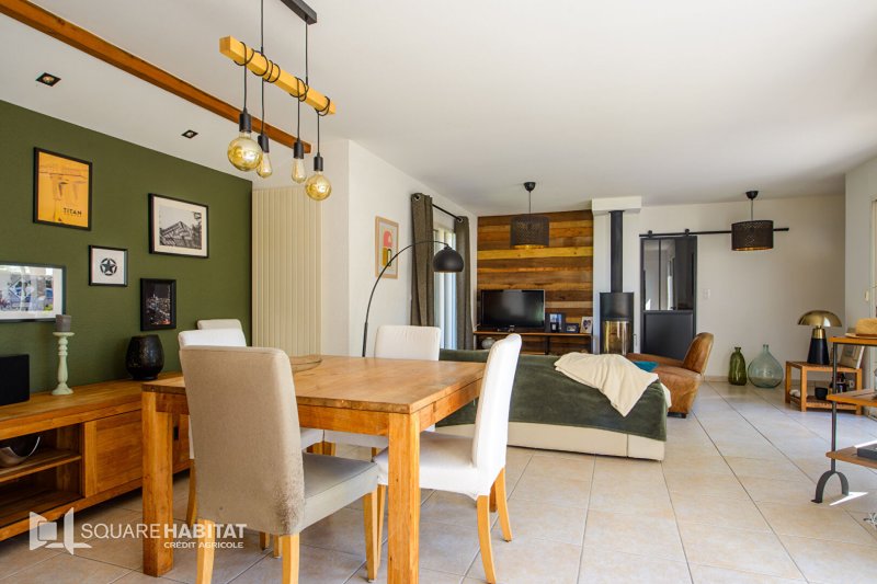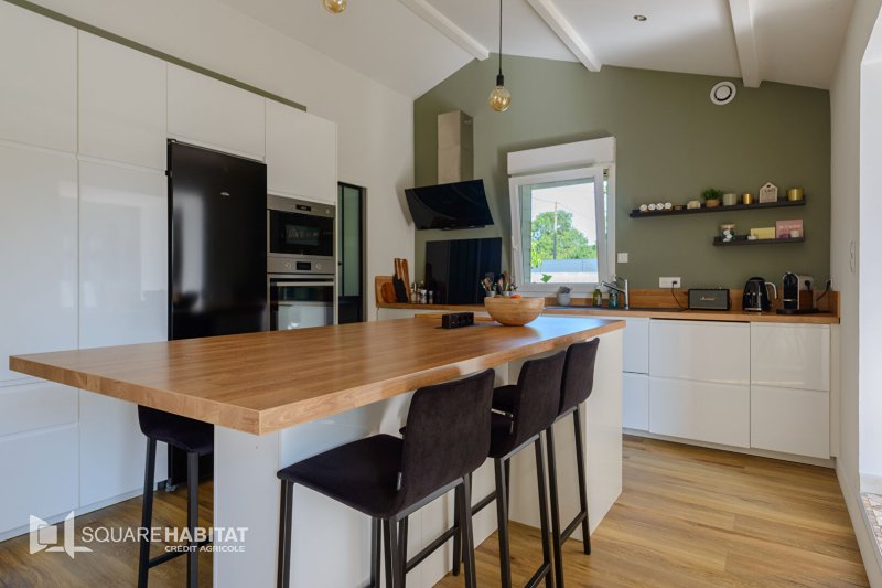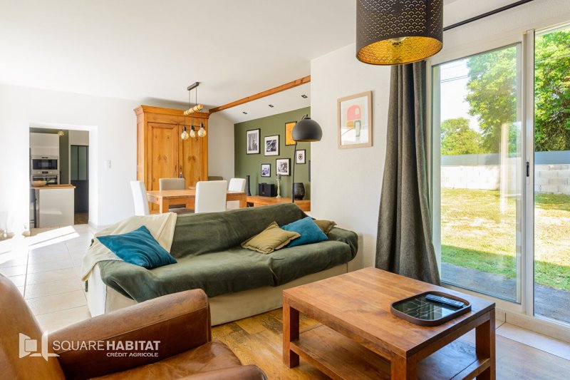A 5 minutes du bourg, vous serez séduit par cette charmante maison en parfait état et entièrement de plan pied. Composée d'une belle pièce de vie baignée de lumière avec son poêle à bois qui permet de chauffer toute la maison, d'une grande cuisine complètement aménagée et équipée, de quatre chambres, d'une salle d'eau et d'une salle de bains avec baignoire et douche. Sa terrasse d'environ 50 m² pourra accueillir vos bons moments en famille ou entre amis. Vous bénéficierez en plus d'un grand garage d'environ 60 m².
