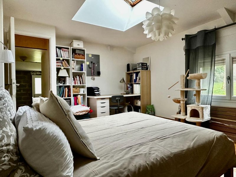 Enfin en extérieur un garage a été aménagé en pièce + grenier ( parquet flottant, isolation....) qui a pu précédemment servir de pièce pour le télétravail ou salle de sport.