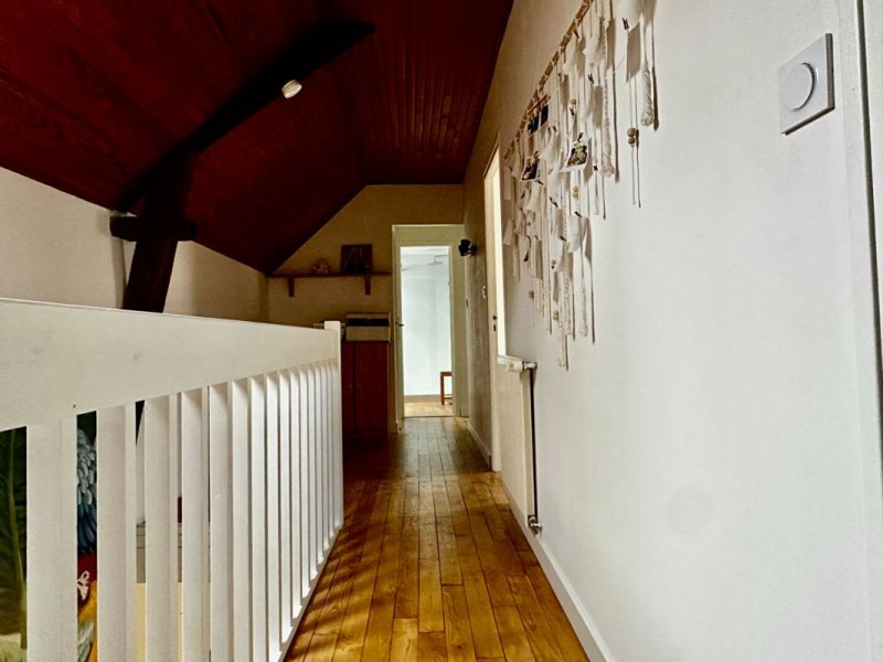 A l'étage, un palier dessert 3 chambres avec placards, chambre avec des superficies de 10 à 13 m², une salle d'eau récemment installée, un petit espace mezzanine.
