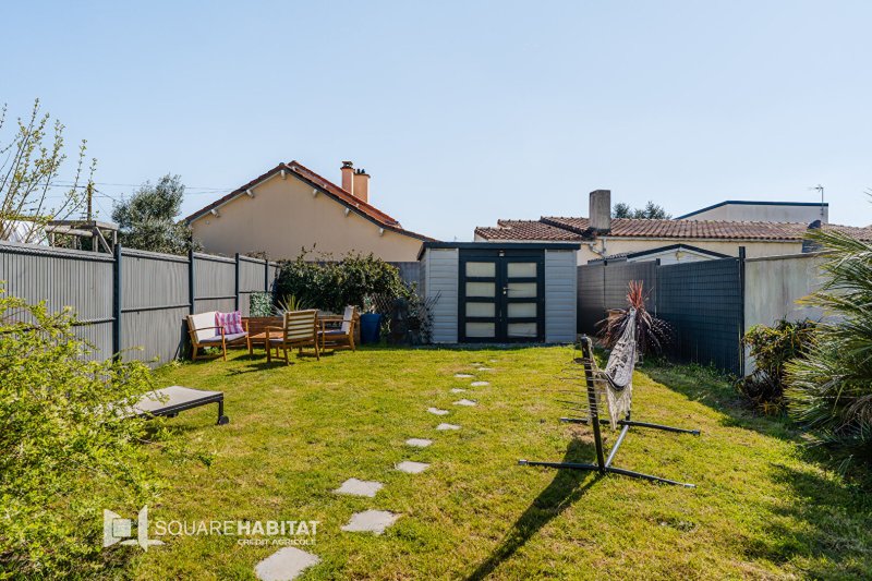 A l'extérieur, un jardin clos et arboré exposé sud disposant d'un espace terrasse et d'un cabanon idéale pour du stockage.