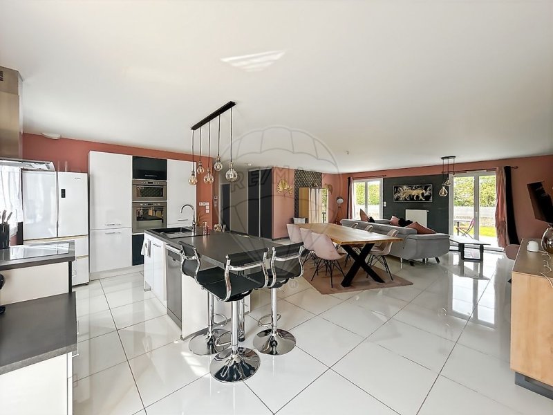 Située au cœur de Sainte-Lumine-de-Coutais, à quelques pas des commerces, écoles et services, cette maison de plain-pied édifiée en 2013 offre un cadre de vie pratique et serein. Implantée en second rideau, elle profite d’un environnement calme et d’un terrain de 483 m² sans vis-à-vis, garantissant intimité et tranquillité. D’une surface habitable d’environ 110 m², elle séduit par ses volumes généreux et sa conception fonctionnelle. La pièce de vie, véritable cœur de la maison, développe près de 62 m². Lumineuse et chaleureuse, elle réunit salon, salle à manger et cuisine aménagée et entièrement équipée dans un espace ouvert propice à la convivialité. L’espace nuit se compose de trois chambres, d’une salle de bains, d’un WC indépendant et d’une buanderie, apportant un confort optimal au quotidien. À l’extérieur, une terrasse exposée plein sud, équipée d’un store banne, prolonge agréablement l’espace de vie et permet de profiter pleinement des journées ensoleillées. Le jardin, clos et facile d’entretien, dispose également d’un abri de jardin ainsi que d’un puits. Conforme à la réglementation thermique RT2012, la maison bénéficie de prestations soignées : menuiseries PVC double vitrage, volets battants, chauffage au gaz via une cuve enterrée sous contrat Primagaz, et raccordement au tout-à-l’égout. Idéalement située, à seulement 10 minutes de Saint-Philbert-de-Grand-Lieu et à environ 25 minutes du littoral atlantique, cette propriété offre un équilibre parfait entre dynamisme local et douceur de vivre. Un bien clé en main, parfaitement adapté à une famille, un couple ou de jeunes retraités en quête de confort et de proximité. À découvrir rapidement.