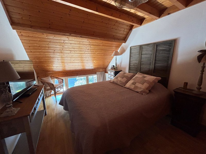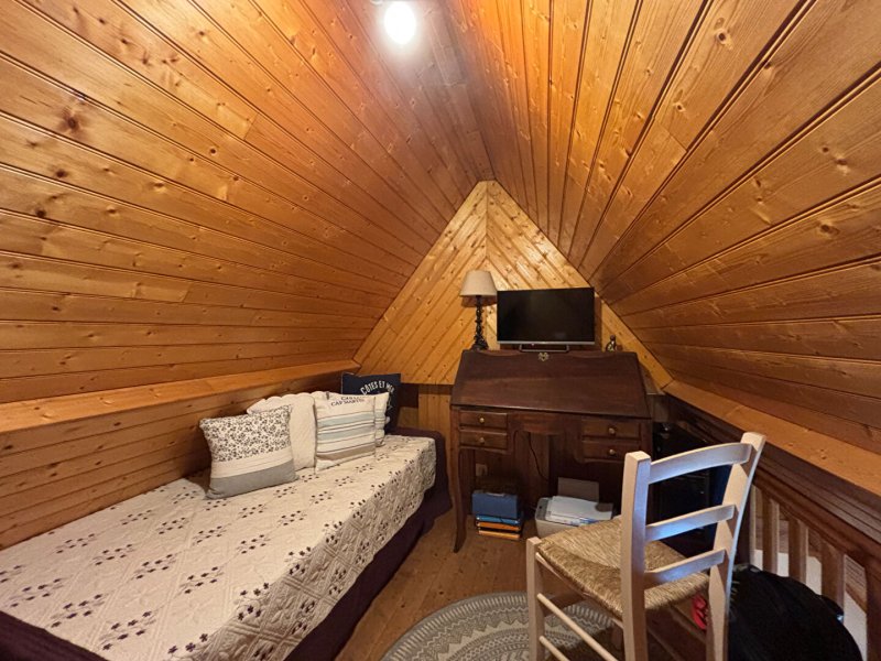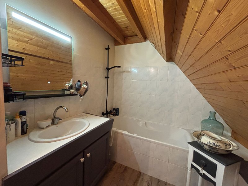 À l'étage : une chambre avec placard, une mezzanine pouvant servir d'espace nuit ou de détente, et une salle de bains avec wc. Au 2ème étage un grenier et un bureau, idéals pour vos rangements ou pour le télétravail. Garage