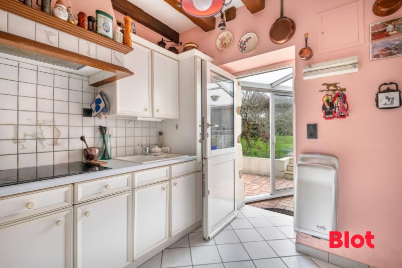 La cuisine indépendante s'ouvre sur une véranda lumineuse, idéale pour profiter du jardin toute l'année, avec cellier attenant.