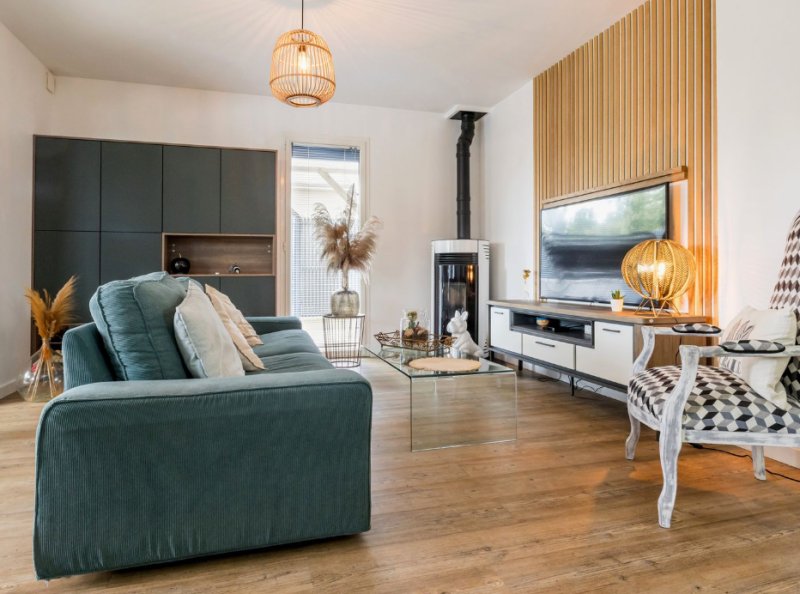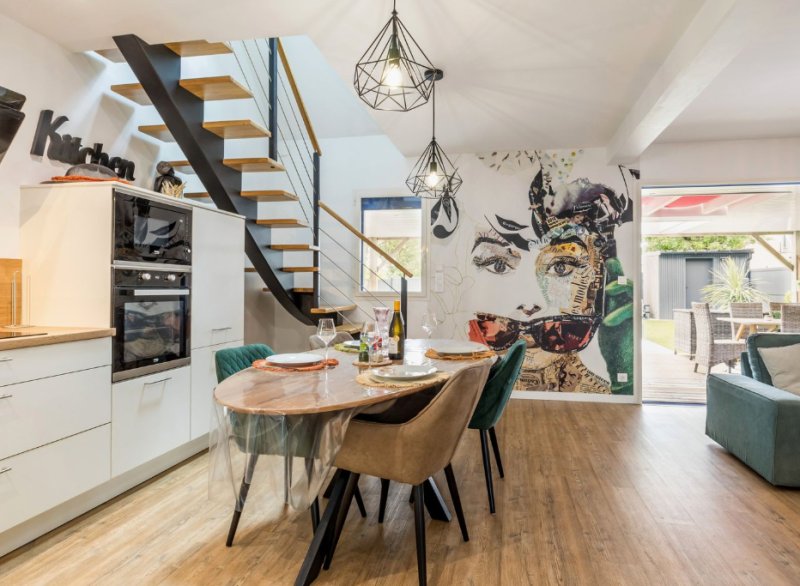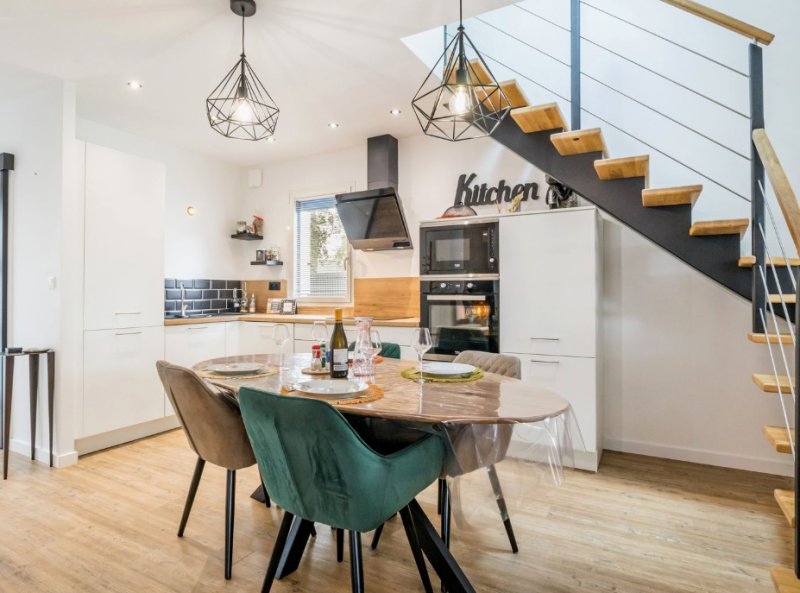 A 800m des commerces de St Lyphard, belle maison récente avec décoration soigné offrant en rdc: une pièce de vie très lumineuse avec cuisine ouverte aménagé et équipé, une chambre avec salle d'eau , wc.