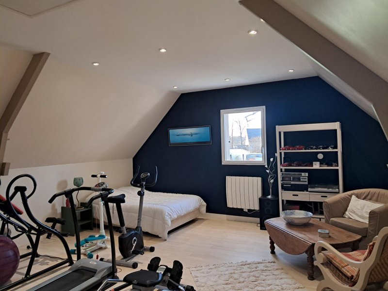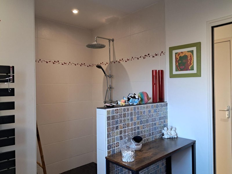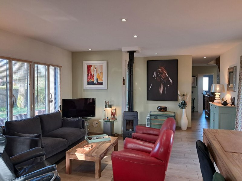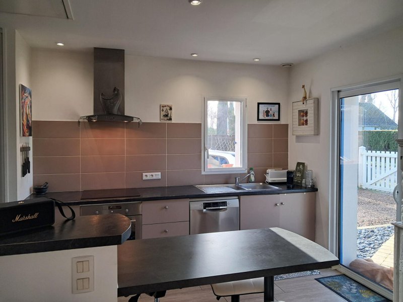 Au rdc, une pièce de vie lumineuse avec cuisine ouverte aménagée et équipée, 3 grandes chambres avec placards de rangement, une grande salle d'eau, un wc, une buanderie, un grand garage en bois de 63 m2 encore sous décennale. Possibilité d'augmenter la surface de la maison dans les combles.
