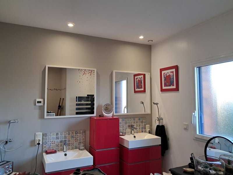 Chauffage au sol électrique en rdc et poêle à bois et radiateur à l'étage.