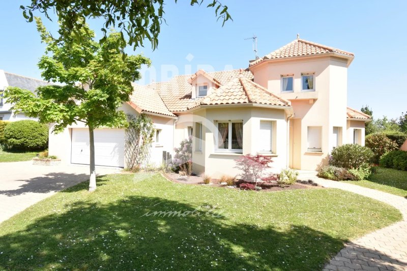 Environnement privilégiépour cette maison d 'architecte de 6 pièces à deux pas des commerces et des plages de St Marc sur Mer composée en Rdc: Un hall d'entrée, un bureau, un salon/séjour avec cheminée, une cuisine aménagée et équipée, un toilette, deux chambres, une salle de bains et de douche, un double garage, une cave et un grenier. A l'étage: Un pallier, deux chambres, un toilette, une salle de douche et une grande salle de jeux/dortoir. Jardin paysagé (puit artésien) entièrement clos sur environ 1 400 m².