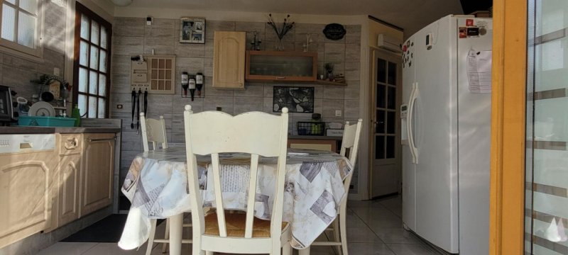 Côté nuit, un couloir dessert trois chambres sur parquet, dont une avec point d'eau privatif. La salle de bain dispose d'une baignoire, d'une douche et de WC. Un garage vient compléter ce bien aux belles possibilités d'évolution.