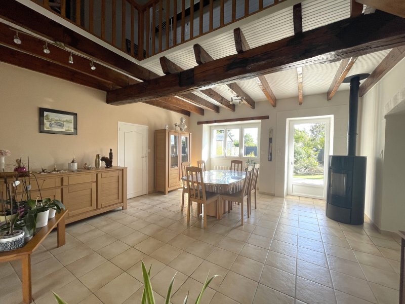 Exclusivité POINSOT Immobilier Saint Mars du Désert - Maison parfaitement entretenue à découvrir ! Construction de base en pierres et extensions - Axe Carquefou - Nort sur Erdre Edifiée sur une parcelle de presque 1000 m2 et d'une surface habitable de plus de 115 m2, elle comprend de plain-pied : une pièce de vie avec poêle à granules récent, un espace cuisine aménagée (Schmidt) et équipée avec également une petite cheminée à foyer ouvert, un espace lumineux, un salon, une salle de bains, un WC séparé et une chambre avec placard. A l'étage : une mezzanine et 2 chambres avec placards aménagés. En annexes : buanderie, grand garage attenant carrelé (47 m2) avec espaces sanitaires dont WC, une cave, un garage indépendant supplémentaire d'environ 50 m2, dépendance pour stockage, cabanon de jardin récent... Cour bitumée, espaces terrasses, jardin clos et arboré, puits, arbres fruitiers : poirier, pommier, pêcher, noyer... Couverture ardoises naturelles, isolation correcte laine de verre et laine de roche, menuiseries récentes double vitrage Alu-PVC, volets roulants motorisés sur l'ensemble des pièces, chaudière gaz de ville avec production d'eau chaude sanitaire, DPE : D Vous souhaitez d'autres renseignements ou programmer un rendez-vous de visite ? Contactez sans tarder votre agence POINSOT Immobilier ! Estelle FERY-DEHEURLE (EI RCS Nantes 479118119) au O6.16.17.19.20. Les informations sur les risques auxquels ce bien est exposé sont disponibles sur le site Géorisques : www.georisques.gouv.fr