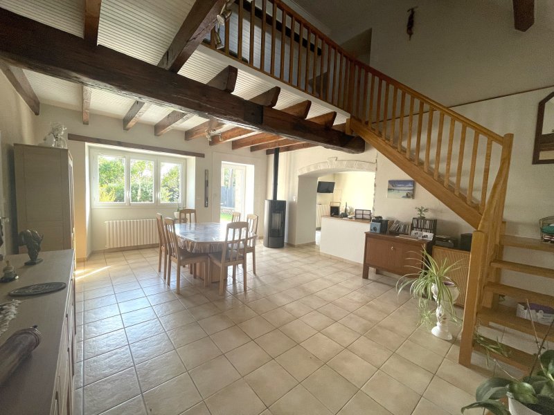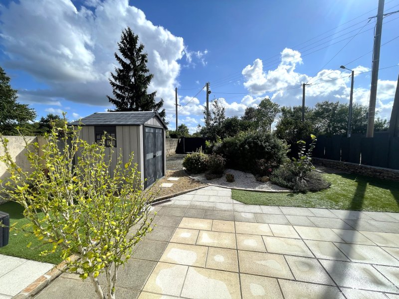 Exclusivité POINSOT Immobilier Saint Mars du Désert - Maison parfaitement entretenue à découvrir ! Construction de base en pierres et extensions - Axe Carquefou - Nort sur Erdre Edifiée sur une parcelle de presque 1000 m2 et d'une surface habitable de plus de 115 m2, elle comprend de plain-pied : une pièce de vie avec poêle à granules récent, un espace cuisine aménagée (Schmidt) et équipée avec également une petite cheminée à foyer ouvert, un espace lumineux, un salon, une salle de bains, un WC séparé et une chambre avec placard. A l'étage : une mezzanine et 2 chambres avec placards aménagés. En annexes : buanderie, grand garage attenant carrelé (47 m2) avec espaces sanitaires dont WC, une cave, un garage indépendant supplémentaire d'environ 50 m2, dépendance pour stockage, cabanon de jardin récent... Cour bitumée, espaces terrasses, jardin clos et arboré, puits, arbres fruitiers : poirier, pommier, pêcher, noyer... Couverture ardoises naturelles, isolation correcte laine de verre et laine de roche, menuiseries récentes double vitrage Alu-PVC, volets roulants motorisés sur l'ensemble des pièces, chaudière gaz de ville avec production d'eau chaude sanitaire, DPE : D Vous souhaitez d'autres renseignements ou programmer un rendez-vous de visite ? Contactez sans tarder votre agence POINSOT Immobilier ! Estelle FERY-DEHEURLE (EI RCS Nantes 479118119) au O6.16.17.19.20. Les informations sur les risques auxquels ce bien est exposé sont disponibles sur le site Géorisques : www.georisques.gouv.fr