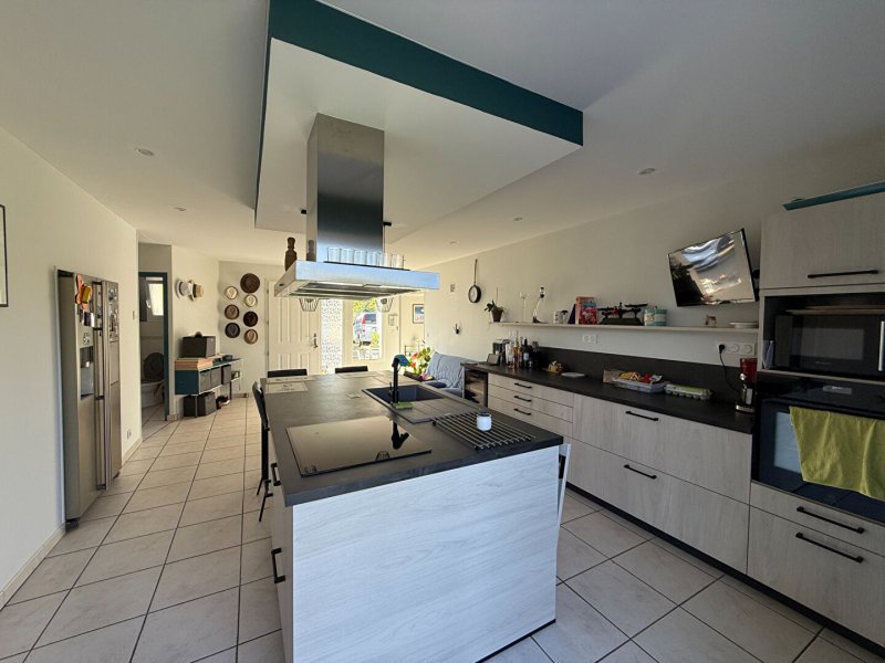 Sur un grand terrain en plein coeur du bourg, vous retrouverez une grande cuisine équipée et aménagée avec une arrière cuisine, un salon avec poêle à bois, une partie nuit composée d'une suite parentale avec sde, une chambre, un wc, à l'étage un palier dessert deux chambres, une sdb avec wc.