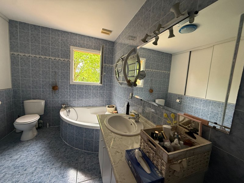 Chauffage au sol en aérothermie, menuiserie double vitrage, terrain piscinable.